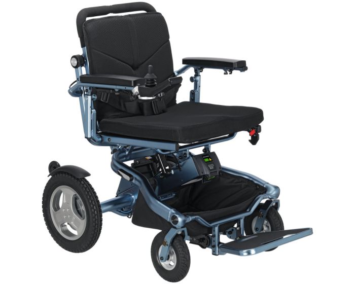 Mit abschwenkbarem Joystick, verstellbaren Armlehnen und klappbarer Fußstütze bietet er hohen Bedienkomfort. Die integrierte Verladehilfe ermöglicht den Transport in Kofferräume bis 76 cm Höhe – ideal für unterwegs.