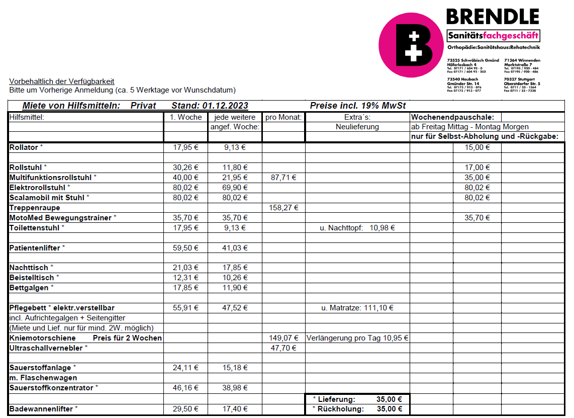 Getreu unserem Leitspruch „Nah am Kunden – mit Kopf, Herz & Hand“ haben Sie bei uns die Möglichkeit beinahe jedes Hilfsmittel zu mieten.